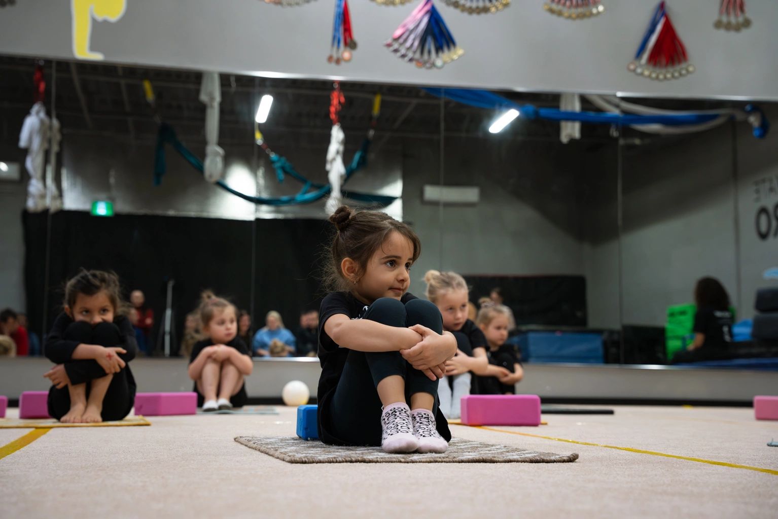 This is a drop-off style class. Parents do not participate on the floor. This allows children to focus, listen to their coaches, and build independence in a group setting.