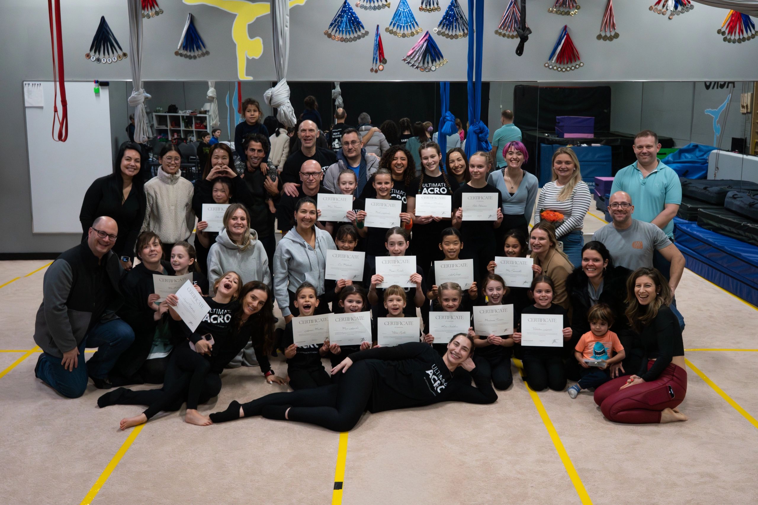 We teach gymnastics, acrobatics and aerial hammock, in a safe and structured environment. Our acro training builds coordination, strength, and body control that can carry over into gymnastics, dance, and circus arts. We keep our coach-to-student ratio low at 1 to 6 so every child gets the attention they need to grow.